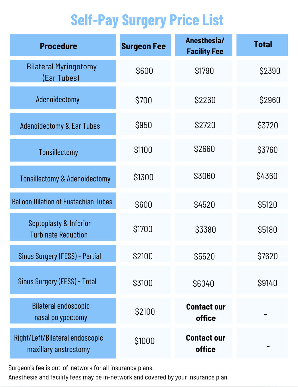 Surgery Price List
